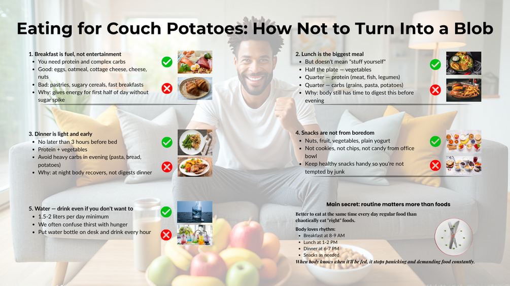 -Movement Lifestyles - How to eat smart when you barely move - Avoid weight gain without strict diets - Office-friendly meal strategies - Real talk about desk work metabolism